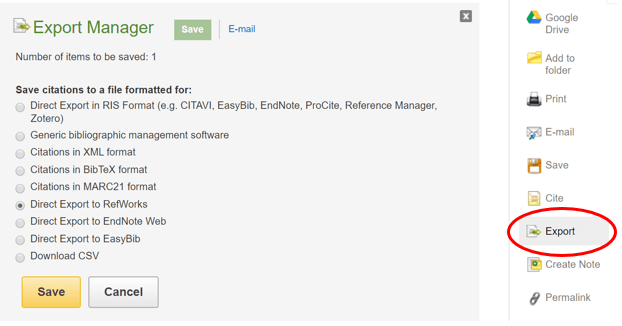 By exporting your article into Refworks, you now have a save and secure location to store the article and return to it later.